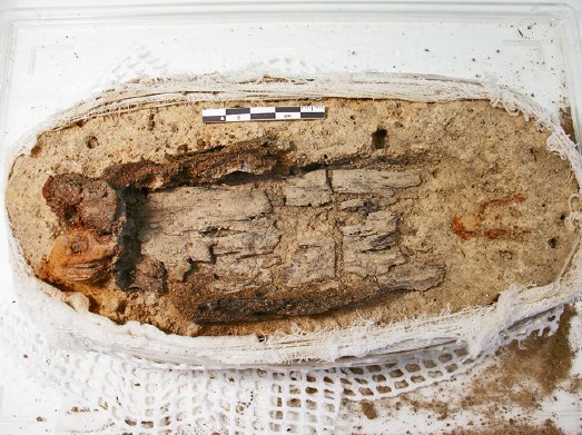 Fig. 5. Det udgravede præparat med trææsken, hvori skatten var nedpakket.