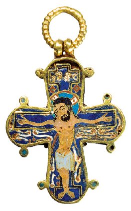 Fig. 9. Dagmarkorset fra den kongelige gravkirke Sankt Bendts i Ringsted er lavet af guld og emalje i Byzans. Dateringen er omdiskuteret og svinger fra 1000-tallet og til omkring år 1200. Det er en eksklusiv udgave af den type kors, som var forbilleder for det bornholmske kors.