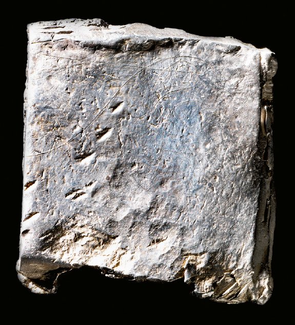 Silver bar with incised graffiti of a bird (eagle or dove). Foto: Roberto Fortuna 2013