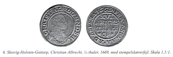 Denne antagelse støttes af, at langt de fleste eksemplarer af 1/16 thaler 1669 bærer den korrekte indskrift (fig. 7).