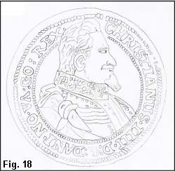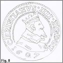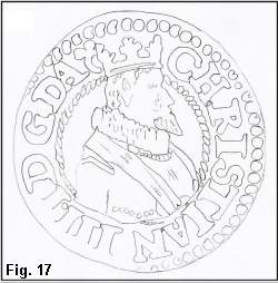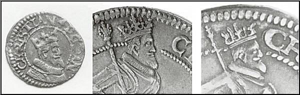 I 1611 er igen slået søsling (se Wilcke), og der findes da også søsling med portrættype 6 som vist i Fig. 17. Den viste mønt er med møntmestermærke og portræt til randen foroven (Hede Nr. 84A), men den viste portrættype findes også uden møntmestermærke (Hede Nr. 84B) og med portræt til randen forneden (Hede Nr. 81). Alle søslinge med denne portrættype må efter min mening henføres til udmøntningen 1611. Disse søslinge er ikke almindelige, hvilket igen harmonerer fint med et udmøntningstal på kun 338 daler (se Wilcke).