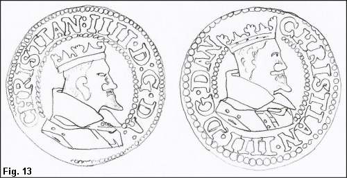 Wilcke (p. 30) beskriver, hvorledes Kejser Ferdinand II i Østrig på thalere fra 1623 markerer et nyt (og bedre) sølvindhold i mønten ved ændring af kejserens krave. I Danmark i 1610 er der tale om en forringelse af mønten, men der har formentlig alligevel været grund til at skelne den nye mønt fra den gamle, og jeg antager, at det konsekvente kraveskift markerer dette.