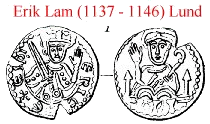 Den tidligere store Fattigdom i Erik Ejegods Myntrække beroede for en Del paa et Par af hans Mynttypers urigtige Henførelse til de senere Konger Erik Emun og Erik Lam. Den ene var Typen fra Lund med Kongens modvendte Brystbillede og Lammet (T. XII. Erik. 3).