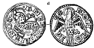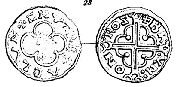 Blomst, uden kjendt Forbillede. Findes ogsaa, men af anden Form, paa Mynter fra Staden Stablo (206). Paa 1 Udmyntning fra Lund (T. II. 19).