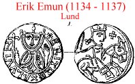 Typen med Lammet er hidtil stedse henført til Erik Lam, formentlig paa Grund af Reversfremstillingen, og Roskildemynten med Brystbilledet med den høje Krone til Erik Emun. Enkeltheder i Fremstillingerne saavelsom Fundene vise dog disse Henførelsers Uholdbarhed.