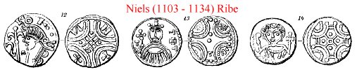 Medens enkelte af Udmyntningerne under Niels i deres Karakter slutte sig til Erik Ejegods, anvendes der ogsaa andre Typer, der dels ere paavirkede af tyske Mynter, dels have Adversfremstillinger, hvortil der ikke kjendes Forbilleder, men hvor den tyske Karakter kan spores.