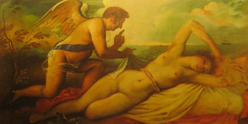 Dette morsomme maleri, der ses i The Marine Pavilion som viser af H.R.H. The Prince Regent (George IV) der vækker det slumrende Brighton. Billedet er malet i 1944 af Rex Whistler.