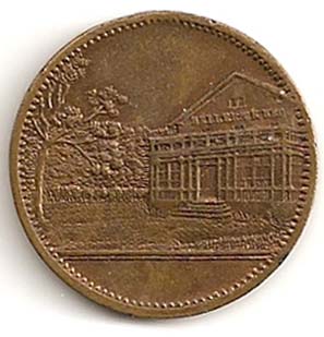 Frantz Olsen Hellebæk kro og badeanstalt (1891). En af de få jetons fra badeanstalter i Danmark.