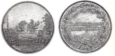 Klampenborg Badeanstalt oprettedes i 1844 efter kong Christian 8. havde fra solgt en del af Dyrehaven fra. I 1888 var Vandkur- Brønd- og Søbadeanstalten søgt af tyske turister. På et litografi fra 1888 ses Klampenborg Badeanstalt med badebroer og omklædningsrum.