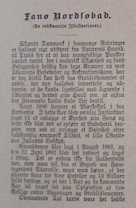 Vesterhavet var, også dengang, tillokkende for turister. I 1890 så en plan om at bygge et kurhotel på øen dages lys. Grundstenen blev lagt august 1891 og den 22. juni 1892 blev hotellet taget i brug. Fra Fanø og Rømø kendes betalingstegn brugt på Hotellerne KUR-HOTELLET FANÒ og Lakolk på Rømø. En serie af betalingstegn fra Lakolk hvor store værdier som 1 og 2 mark bruges kan have været brugt som leje for strandvogne som blev kørt til strandkanten. De mindre værdier kan have været brugt som betaling for kurvestole og håndklæder.