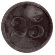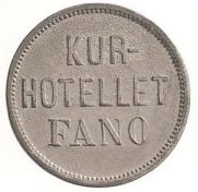 Fig. 27 og 28. KUR-HOTELLET FANÓ 25 ÖRE, f.z. 24 mm. Slotsportner Jerry Meyers samling af danske pengetegn, foto: Niels Elswing 011-18