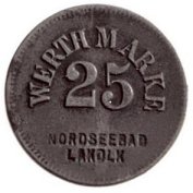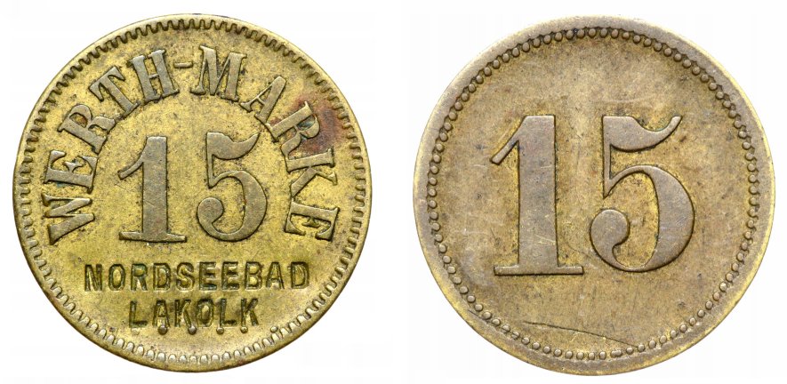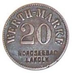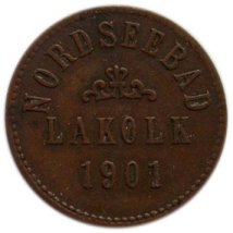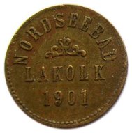 Fig. 35 og 36. 50 Pf. NORDSEEBAD LAKOLK 1901, præget messing 24,7mm. T.H.