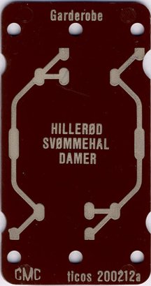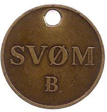 De Københavnske Badeanstalter brugte nr. skilte som udleveredes når man afleverede personlige sager, ur, tegnebog etc. før man gik ind i badekabinerne. Effekterne blev lagt ind i et lille træbox der kunne aflåses af personalet. Nummeret på det udleverede skilt passede til nummeret på døren til træboxen. Tegnene er indsamlet 10. 11. 1969.
