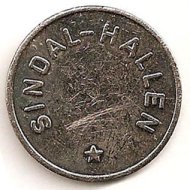 Fig. 79, 80. SINDAL-HALLEN messing og hvidt metal. Forside = bagside. MEKA