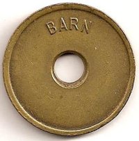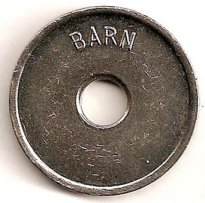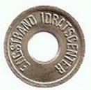 Hul foroven betyder at poletten er brugt som garderobemærke. Voksen 20 Kr. Barn 10 Kr.