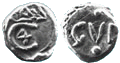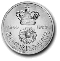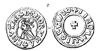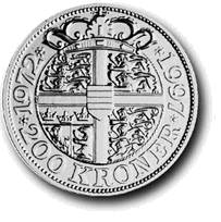 På en mønt fra Knud den Store ses på Hbg. 2, en krone. Kroner, primitive ganske vist, ses nu på danske mønter til Valdemar Atterdag 1340-24. oktober 1375 MB 678, fig. 007.