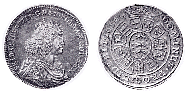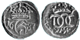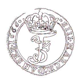 Krone 1666-1670 skåret af Caspar Herbach. Som eksempel Sven Aagaards tegning side 238 66-H4.