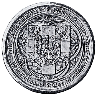 Christoffer af Bajerns majestætssegl fra 1441. Her vises Danmarks løver og kongens våben. ES s. 81, fig. 010.