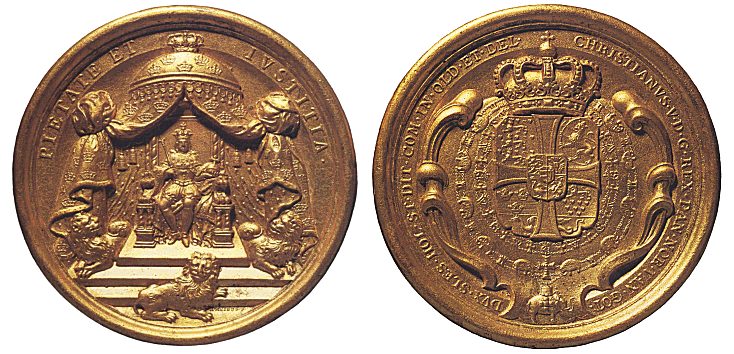 Nicolaus Schwabe blev ansat som "Isensneider" og skar nogle contrafejmedailler i 1595 og 1596. Den unge konge afbildes barhovedet og med en åben krone. Elefanten symboliserer styrke og kyskhed, G. 33, TH 14, lot 2011. fig. 025