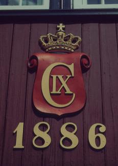 En krone fra Christian 5. udhugget i sten på Laugtinget i Thorshavn. Foto fra Nordisk Unions årsmøde i Thorshavn. fig. 193.