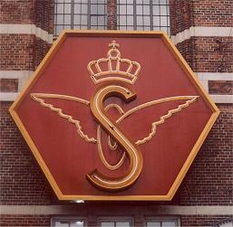 Jan Petersen, Kronet DSB skilt. Hovedbanegården th. for hovedindgangen. DSB har forandret de kronede logoer. På DSB.'s splitflag forsvandt kronen pludselig fra lokomotiver, og flaget fik fjernet bogstaverne, D.S.B. Måske var man ked af at folk tolkede bogstaverne som De Sover Bestandig. På mange lokomotiver forsvandt det kronede logo. Et moderniseret logo, hvor det kronede vingehjul står på skrå (fart på) ses nu på flagstangen i Sølvgade, fig. 162.