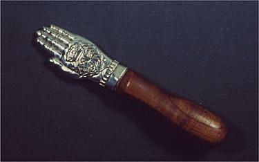 Ved en tilfældighed så jeg for ca. 25 år siden en støbt og ciseleret politihånd i sølv (for politimestre). Denne hånd har Frederik 3.'s monogram på hånden. Med en Kongens Haand, med Frederik 3.'s monogram rykkes tiden for ibrugtagen af politihånden tilbage til ca. 1666- 1670.Netop dette kongemonogram er brugt på 4 Mark stykker. Ser man monogrammet på hånden, og sammenlignes monogrammet på Frederik 3.'s Kroner fra 1666 til 1670 ses en identisk kongekrone. Monogrammet bruges kun i tidsrummet fra 1666 til 1670. Ved enevældens indførsel i november 1665 sker herefter en ændring af den danske kongekrone. Fra at der er 6 bøjler over kronen isættes der to mere, således at antallet nu er 8. Den bøjlekrone, som er på hånden, har 8, fig. 169.