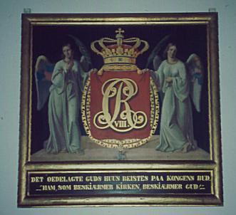 På museer ses mange malerier, hvor kongelige er afbildet. Disse har ofte kroner og navneciffer over maleriet. Dette maleri fra Christian 8. bærer teksten: DET OEDELAGTE GUDS HUS REISTES PAA KONGENS BUD. HAM, SOM BESKIÆRMER KIRKEN, BESKIÆRMER GUD! Frederiksborg Slotskirke.
