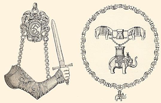 Den væbnede arm kæmpede med elefantordenen om værdigheden som rigets fornemste orden. Først fra Christian 5.'s tid bliver rigets fornemste orden elefantordenen, fig. 179.