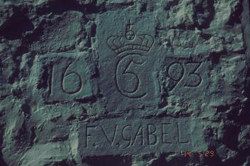 Fig. 166. Ligsten fra 1667 med kronet bagerkringle