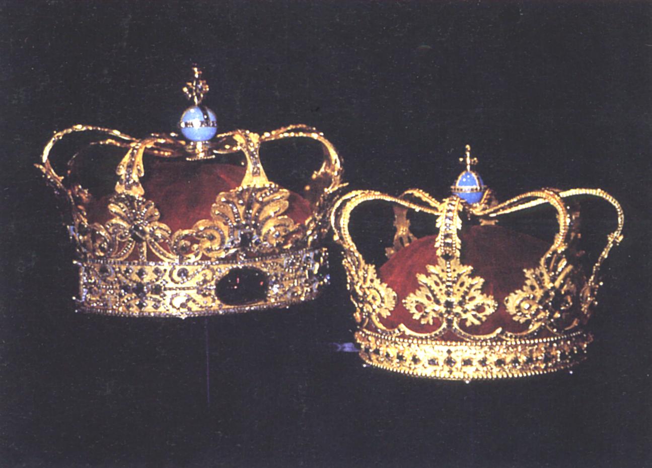På flere andre punkter konkurreredes mellem dansk og svensk. Svenskerne førte deres kongers stamtavle tilbage til - Adam og Eva. Det kunne den danske stamtavle for kongerne dog ikke hamle op mod. De nye svenske regalier tages hermed i brug. Ved kroningen blev der af nyudnævnte svenske grever og friherrer, båret åbne kroner, Lars O. Lagerqvist. Regalierne opbevares sammen med kronen i Skatkammeren, Stockholm Slott, fig. 027.