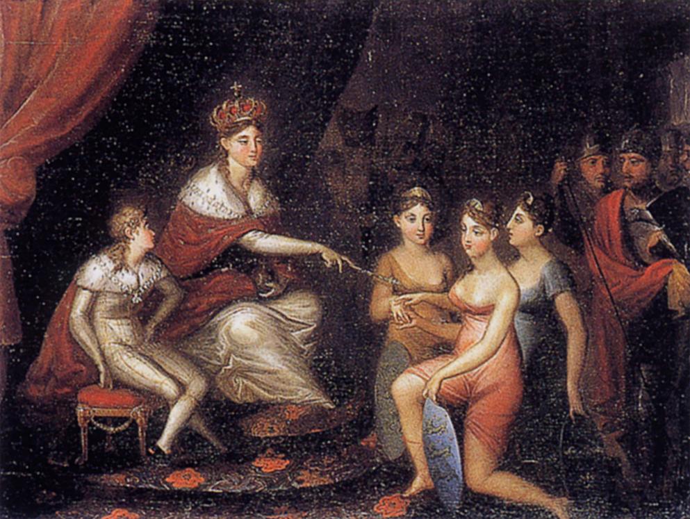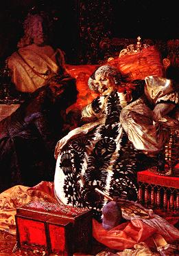 Enkedronning Sophie Amalies død, som det er skildret af maleren Kristian Zahrtmann. Zahrtmann var en ypperlig kunstner, hvis farverige malerier det er en fornøjelse at se. På dette maleri er scenen dog noget dyster.