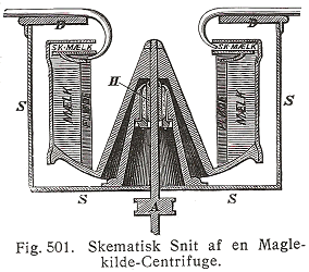 I september 1877 blev en tromlecentrifuge taget i brug ved et mejeri i Kiel, dermed var centrifugeringen indført. I Danmark blev Maglekilde centrifugen opfundet af mekaniker L. C. Nielsen, der arbejdede i Roskilde på Maglekilde Maskinfabrik. Denne maskine opstilledes i 1878 i et københavnsk mejeri.