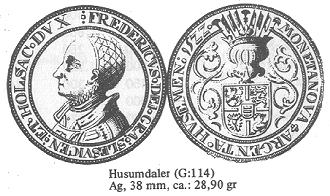 Husumdaleren er præget af den gottorpske hertug Frederik, der først senere blev konge af Danmark (Frederik 1.)