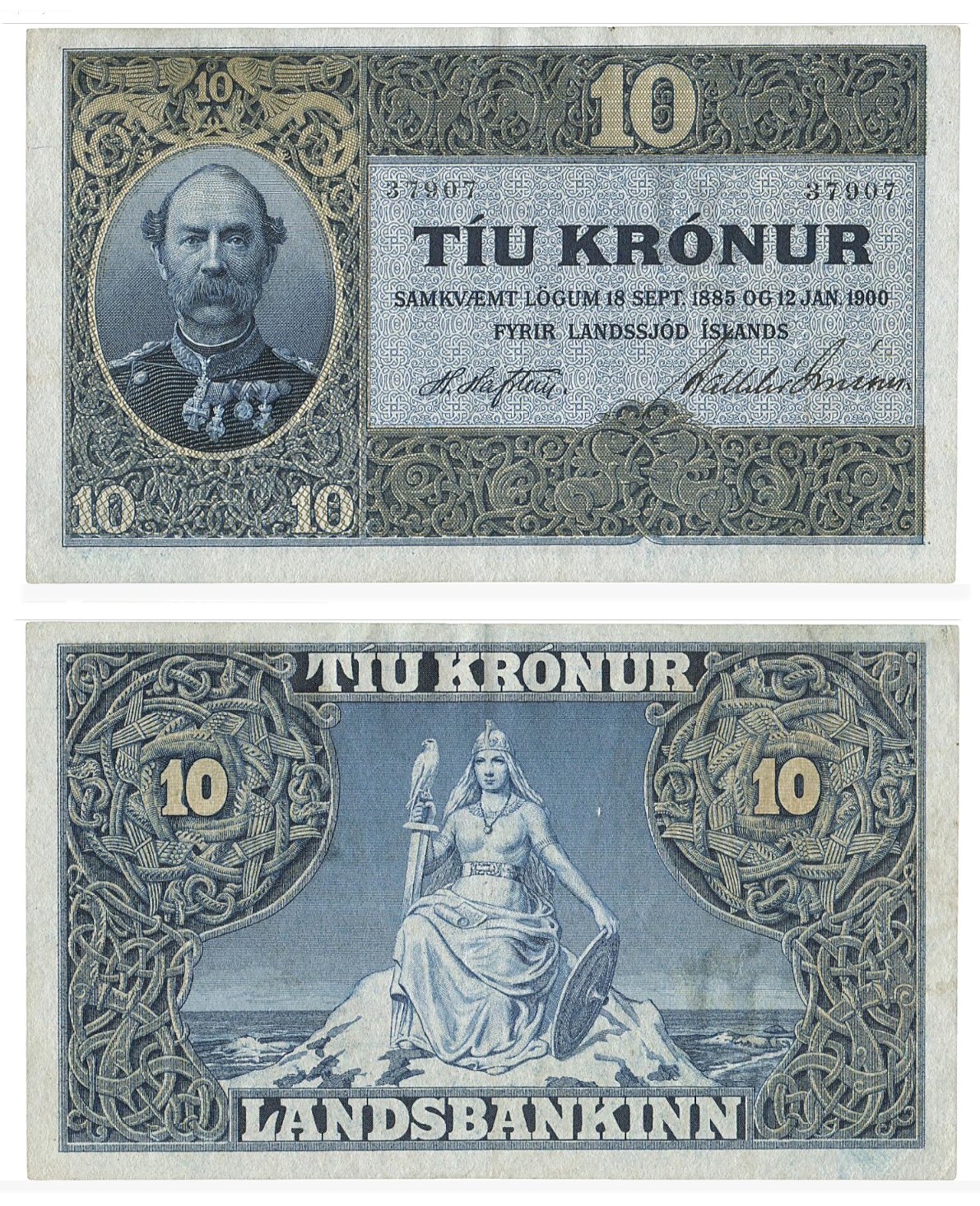 Island. 10 Krónur, Landssjóður, 2. udgave (1885/1907)