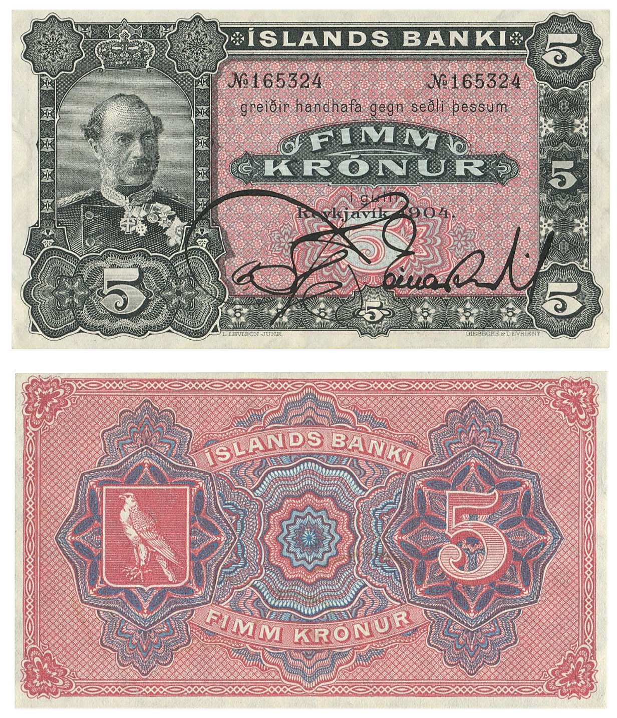 Island. 5 Krónur, Íslands Banki, 1. udgave (1904)