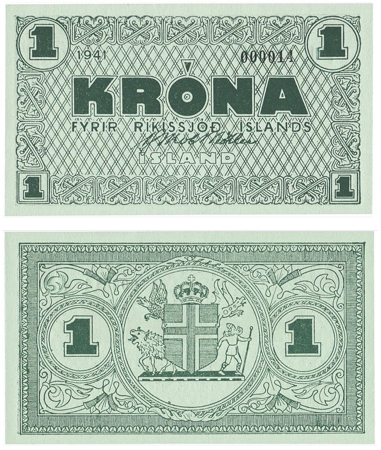 | 28 | 1 Króna | 1941 | Værdiangivelse | Islandske flag | Forskellige farvevarianter | 110 x 63 |