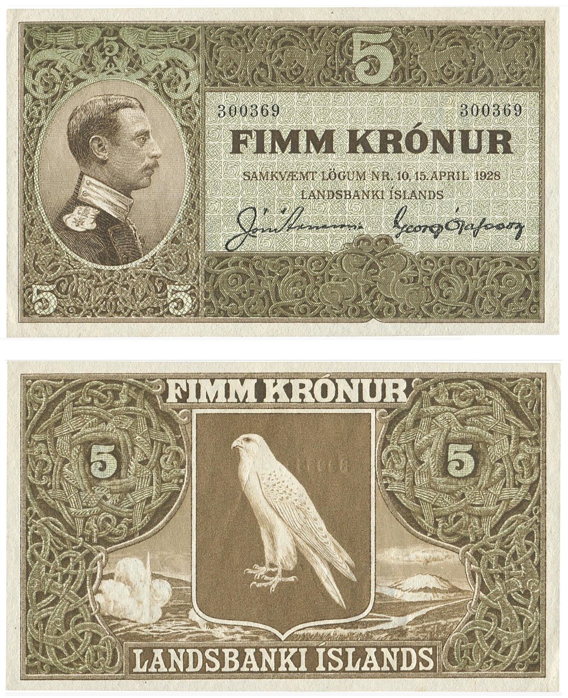 Island. 5 Krónur, Landsbanki Íslands, 1. udgave (1928)