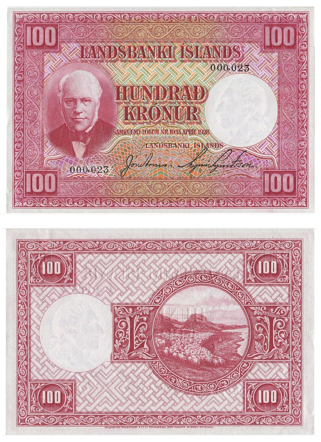 Island. 100 Krónur, Landsbanki Íslands, 2. udgave (1935-1947)