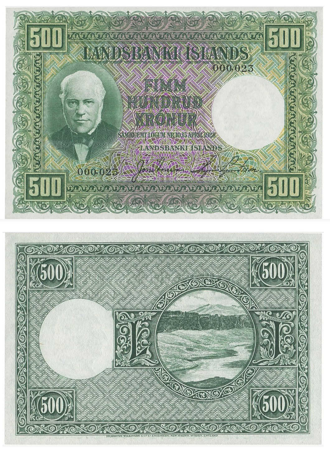 Island. 500 Krónur, Landsbanki Íslands, 2. udgave (1935-1947)