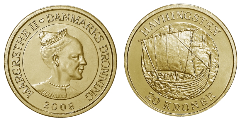 Præget som sjette mønt i en serie med danske skibe.