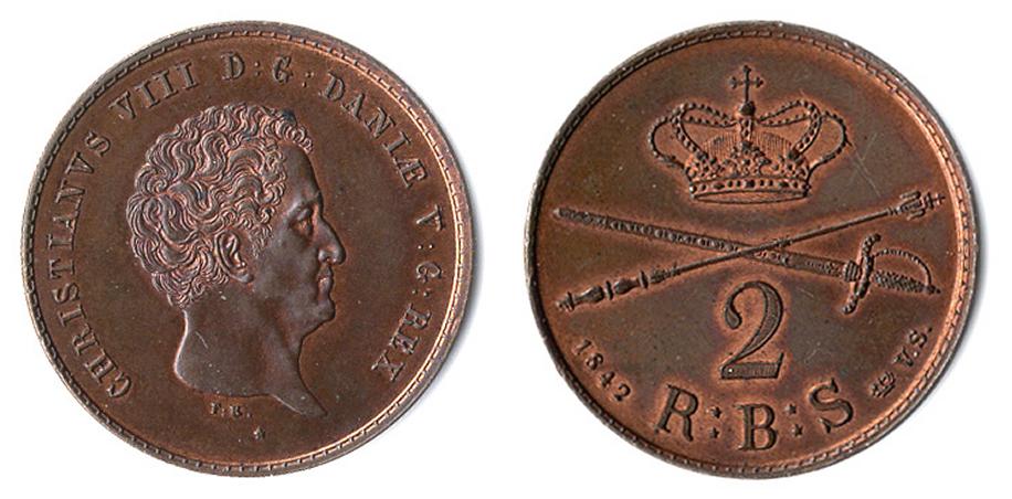 Det meget vellykkede bagsidemotiv fandt herfra vej til de mindre værdier af Christian VIII’s danske mønter, nemlig 4, 3, 2, 1, 1/2 og 1/5 rigsbankskilling. Og det gentoges siden på sønnen Frederik VII’s rigsbankskillinger af årgangene 1852 og 1853.