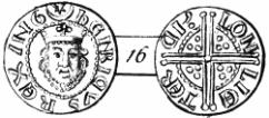 Forlægget er en engelsk penny, her illustreret med et stykke fra Henrik III (1216-1272) og præget i året 1247 i London. Gagsidetegningen burde have været drejete 90 grader til venstre.