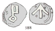 Da Hauberg, som fremlagt i 1884, foretog sin ordning af de danske "borgerkrigsmønter", stod han overfor nogle sene mønter, der i deres fremtoning viser et antal fællestræk, lige såvel som, at mønterne i deres motivvalg kun i yderst begrænset omfang indeholder symboler for kirken og kongen. Han valgte derfor at lade mønterne rubricere under Saxkøbing og for at få regnestykket til at gå op, måtte han inkonsekvent lade flere af mønterne placere som selvstændige Saxkøbingtyper præget adskillige år før grev Johans påståede overtagelse af møntvirksomheden. Den bekendte mønt med en saks som motiv og som det ikke kræver nogen stor eksamen for at kunne foreslå henført til Saxkøbing, måtte han dernæst henføre til et andet møntsted, idet denne mønt i hele sin tekniske udførelse klart adskiller sig fra de af Hauberg nu erklærede Saxkøbingmønter.