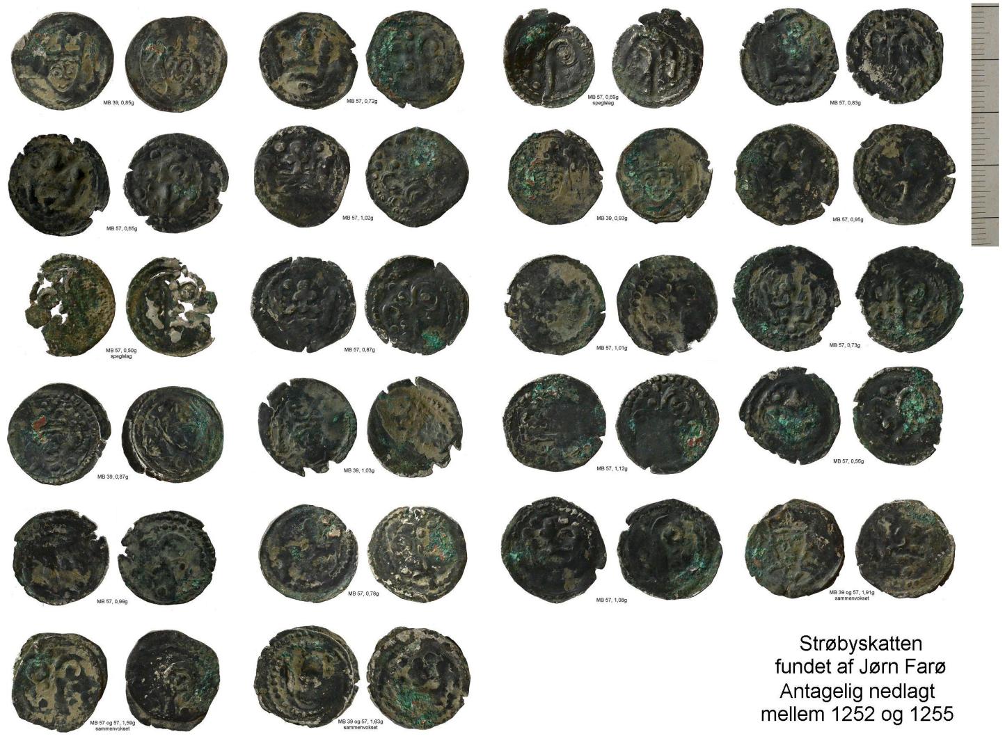 Museum Sydøstdanmark fik en hurtig bevilling til gravearbejde og resultatet udeblev ikke. I skrivende stund ligger antallet af fundne mønter på 93. Om der stadig kun er MB 39 og MB 57 i fundet, ved vi ikke. Men alene fordelingen af de første 25 mønter gør fundet særdeles intresant.
