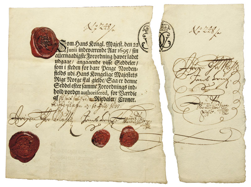 Jørgen Thormøhlen overholdt ikke aftalen om indløsning af sedlerne. Disse blev således indkaldt ved forordning af 21. august 1696.""