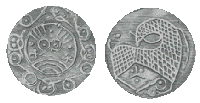 Vi ser her halvbrakteater, mønter på en så tynd blanket, at præget slår igennem på møntens anden side.