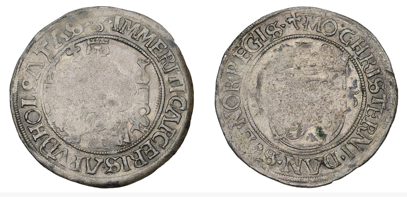 I Güstrow, Mecklenburg slog hertug Albrecht 7. under Grevens fejde mønt i Christian 2.s navn.