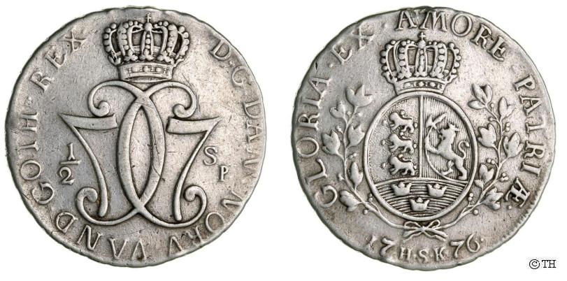 Denne mønt var ukendt indtil Thomas Høilands auktion 137 november 2010. Møntmestermærket peger på København, men der burde ikke være præget halvspecier i København i 1776. Måske er der tale om en prøvemønt.