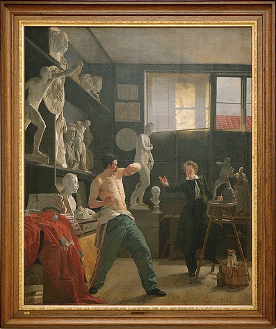 Det forestiller Christen Christensen, der arbejder efter en model.