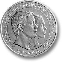 14. maj 2004 giftede kronprins Frederik sig med Mary Donaldson, der herefter blev dansk prinsesse. Brylluppeet fejredes med to mønter, en med pålydende 20 kr og en med pålydende 200 kr.